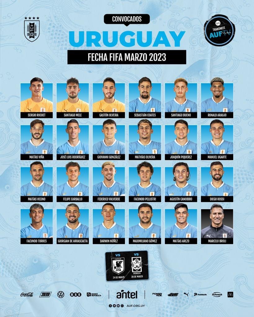 Pero también hay sorpresas, como por ejemplo lo del zaguero Santiago Bueno, Felipe Carballo, el regreso de Gio González por la lesión de Varela. Otro ausente por lesión es De la Cruz. Recordar que Uruguay enfrentará el 24 de marzo a Japón y el 28 a Corea del Sur.
