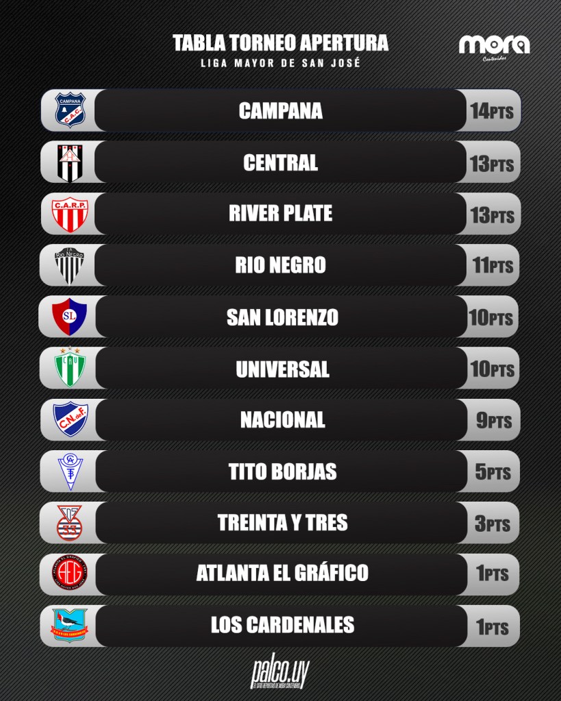 River Plate dio un golpe importante en la tabla del Torneo Apertura de la Liga Mayor tras vencer como visitante a Río Negro en la noche de este miércoles. El triunfo 2 a 1 en el Parque 19 de Abril cerró la 7ª fecha del campeonato y dejó al conjunto del barrio Industrial con 13 puntos, igualando la línea de Central y colocándose ambos como principales perseguidores del líder Campana.