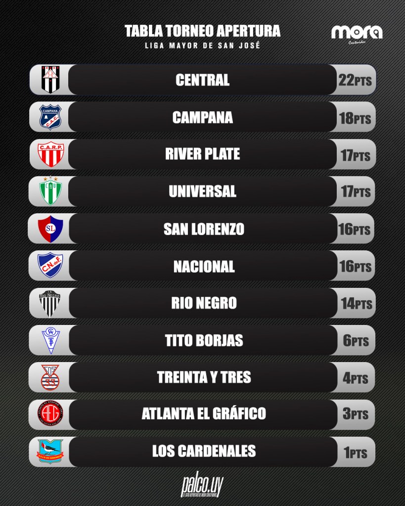 Con estos resultados, Central continúa liderando la tabla con 22 puntos y una diferencia de goles notable. Lo siguen Campana, River Plate y Universal, mientras Río Negro se mantiene expectante, con dos encuentros pendientes que pueden ser determinantes en el desenlace del torneo.